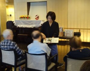 また、朗読の合間には、皆様ご一緒に百人一首の秋の和歌や源氏物語の一節を唱和しました。