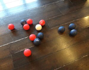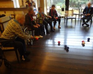 紅組、青組に分かれてボッチャの対戦を行いました。 スーパーショットの連発で毎回接戦となりました。 今回は11対8で青組の勝利となりました。