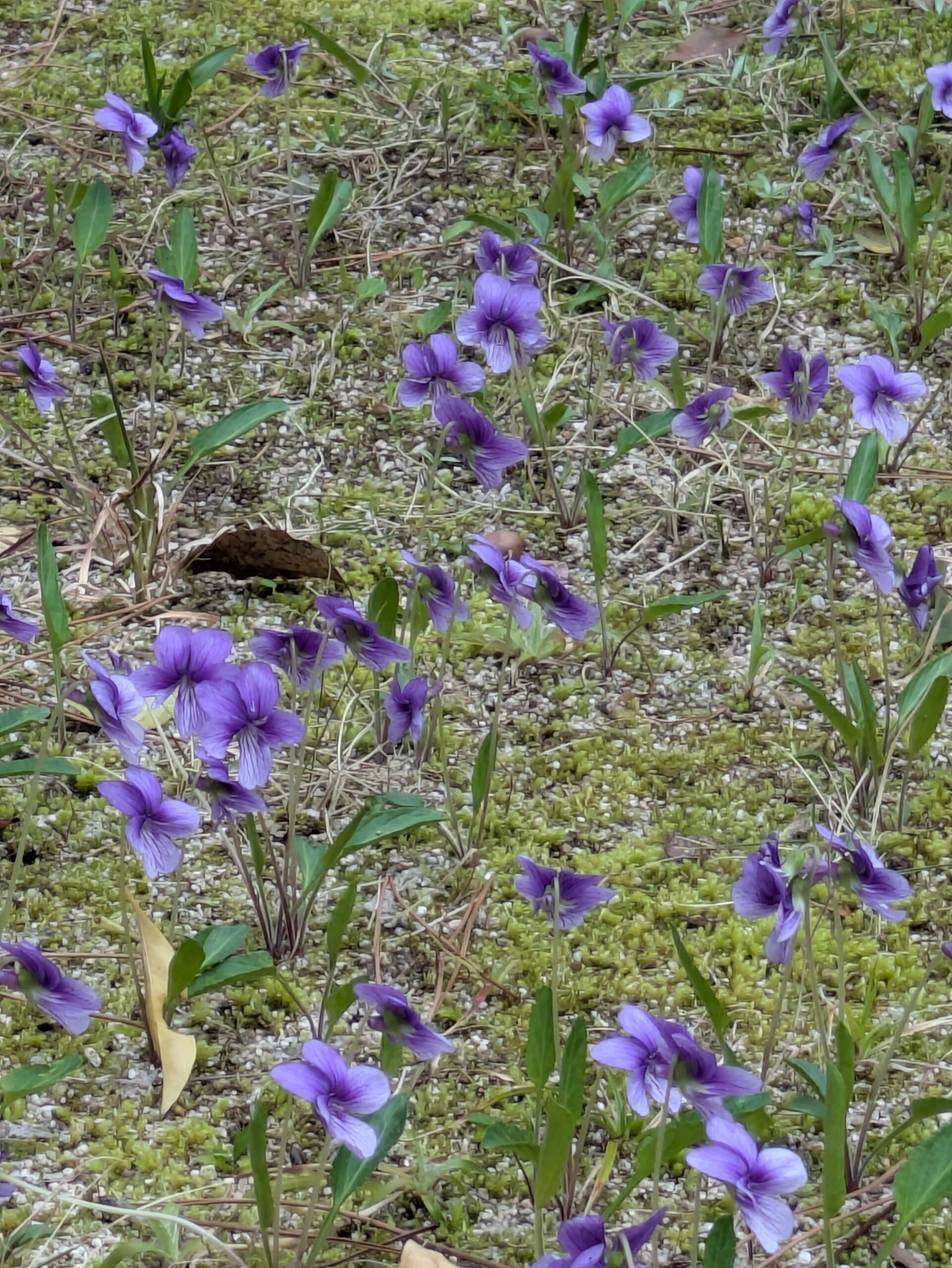 先日まばらだった菫が一気に増え歩く方々を応援しているようです。