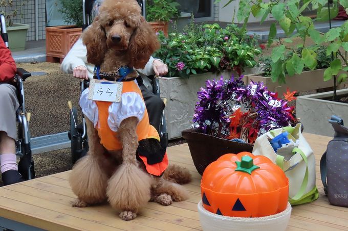 10月27日はドッグセラピーの日でした。 夏の暑い時期は館内で開催していましたが、暑さも和らいできましたので、 久しぶりに中庭での開催となりました。 今回も大小の2匹のわんちゃんに来ていただきましたが、 10月といえば「 […]