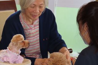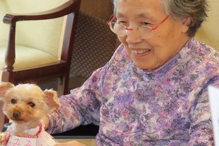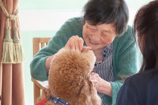 普段あまり笑顔が見られないご入居者もワンちゃんと触れ合うと笑顔になります。