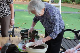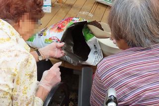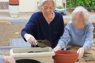 最後にそれぞれの鉢にご入居者のお名前の札を立てて終了です。