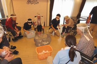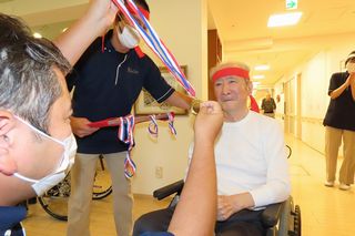 参加されたご入居者は頭にハチマキを巻いてみなさま笑顔で楽しまれていました。