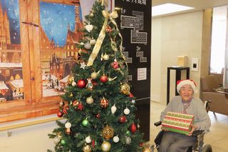 早速ご入居者がツリーの前で記念写真を笑顔でパチリ!