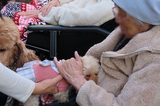 今回もご入居者の皆様は笑顔でわんちゃんに癒されていました。