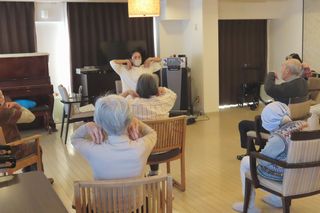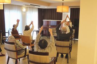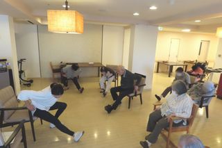 今回はヨガになりますので、参加されたご入居者はインストラクターの先生の