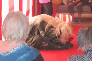 始めに獅子が登場し、激しく舞いを披露すると突然寝てしまいます。