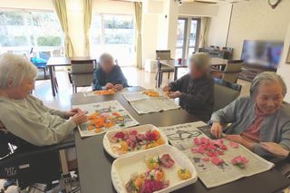 ご入居者にご協力いただいて下の写真のように花びら1枚ずつに分け、