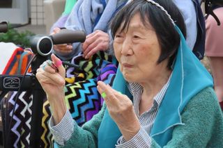 そして4枚1組となる指シンバル「ジル」をご入居者の中指と親指に着けて、