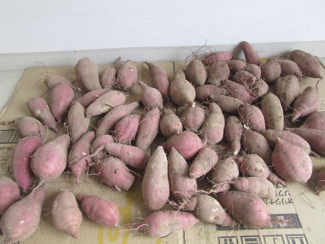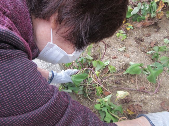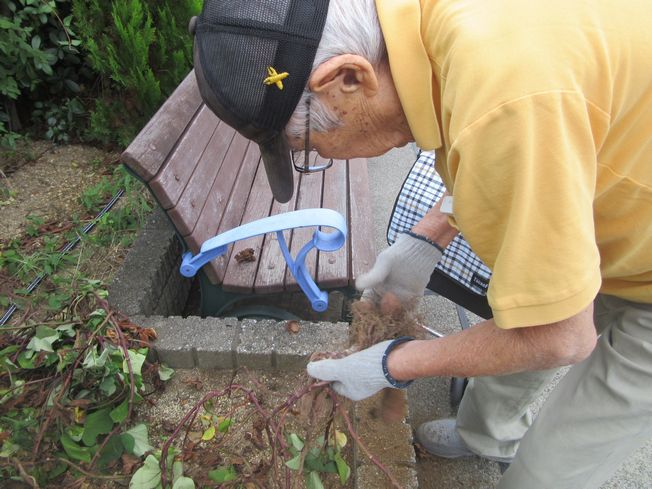 屋上で育てたさつまいもを収穫しました。 今年は夏の気温が高かったためか例年に比べ収穫量が少なく小ぶりでした。 土の中に手を入れて掘り起こすと『昔を思い出すわ』『楽しい』と笑顔でお話しされていました。11月の園芸部で調理して食べようと思います。