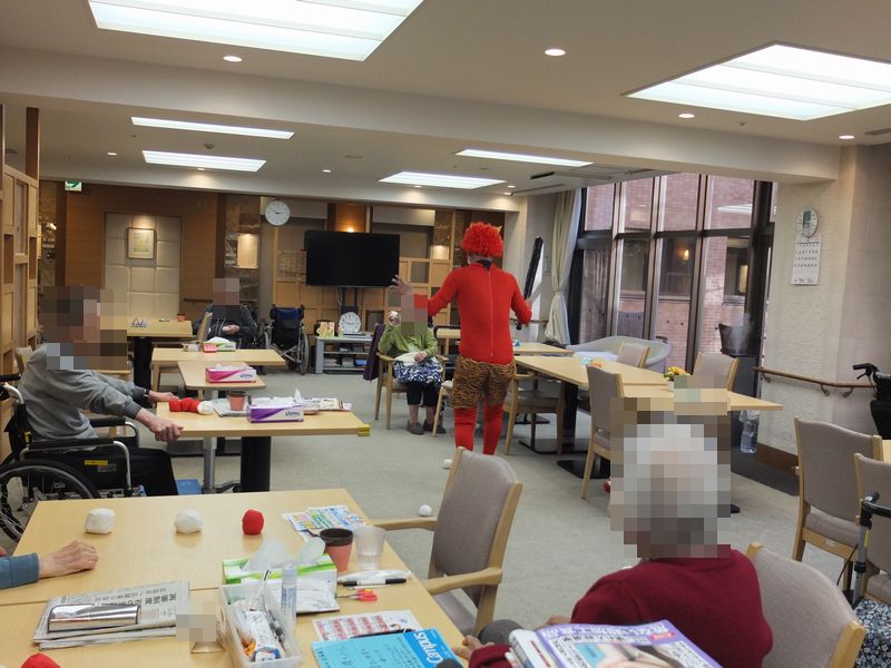 今年もホームに鬼がやってきました! 今回は紅白の玉を豆に見立てて、鬼退治のスタートです。 皆さま「鬼は外!福は内!」と力強い掛け声とともに玉を投げ、活気あふれる時間となりました。 一年の無病息災と、たくさんの幸せが訪れるよう願いを込めた節分。皆さまの笑顔で、鬼も退散していきました。