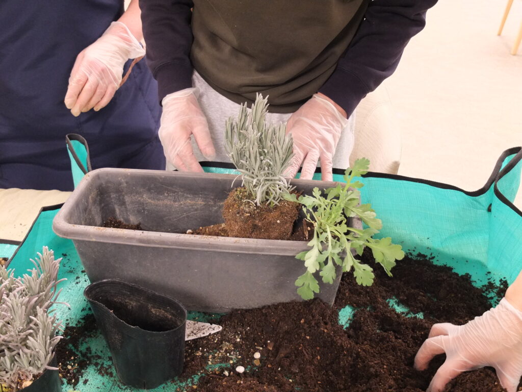 プランターへ移し替える際、手に触れる土のひんやりとした感覚に、メンバー一同「心地いいね」と自然に笑顔がこぼれました。